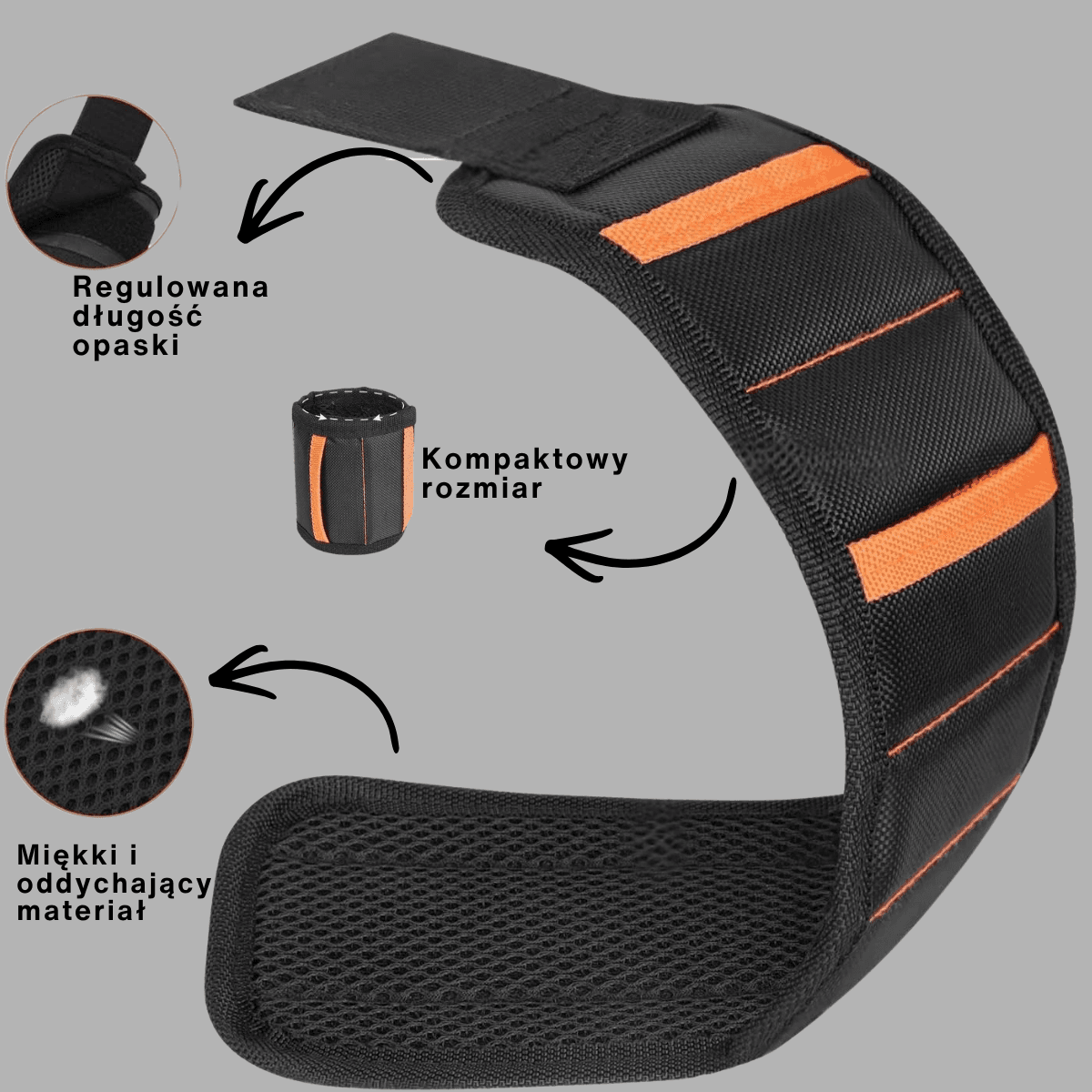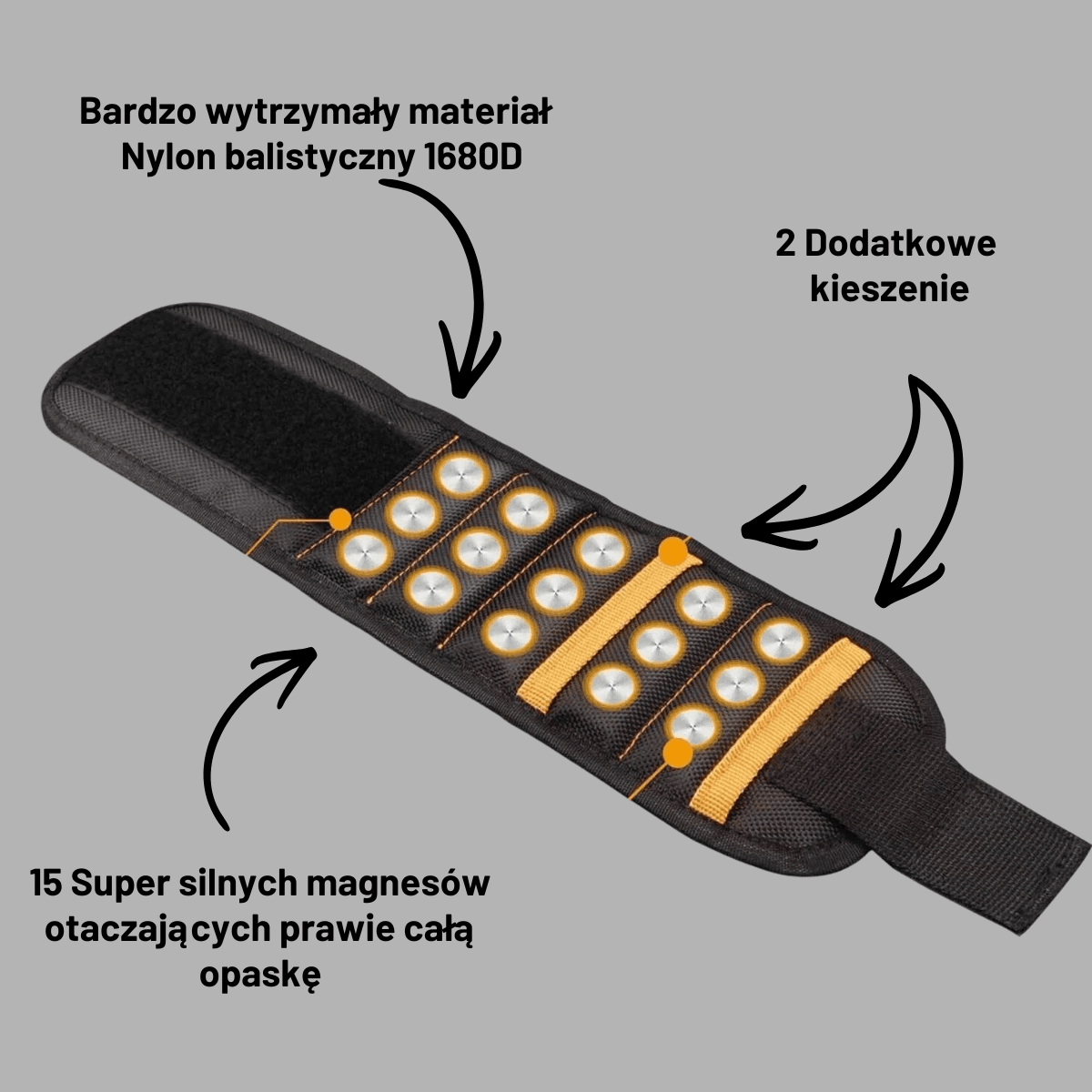 Wypróbuj ulepszona magnetyczna opaska na nadgarstek dzięki 15 mocnym magnesom to praktyczny pomocnik każdego majstra – trzyma wkręty, bity, gwoździe i małe narzędzia zawsze pod ręką.
